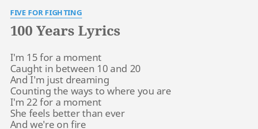 100 Years Lyrics By Five For Fighting I M 15 For A